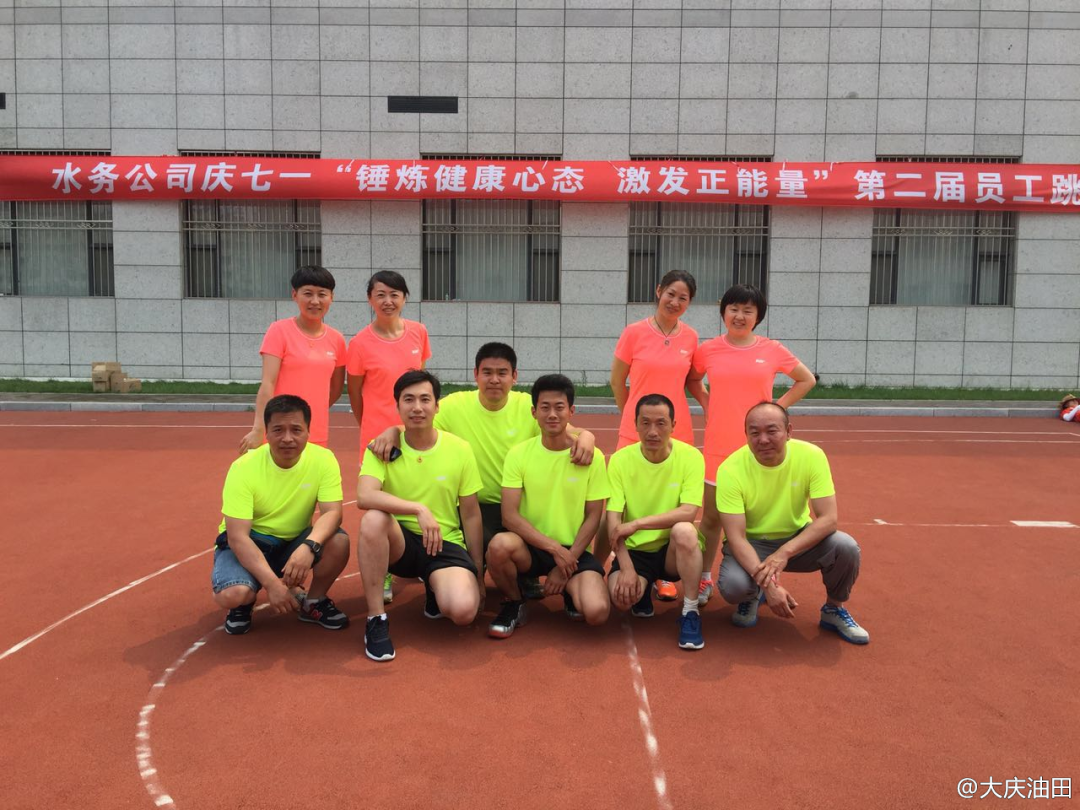 在水务环保公司第二届团体跳绳大赛上,制水二公司(大庆水库管理处)东风水厂的参赛队员在3分钟里以180多个跳跃零失误的成绩获得第一名。赛后,大家合影留念,每个人脸上都洋溢着笑容。他们说:“只要大家拧成一股绳,就没有什么不可能。”