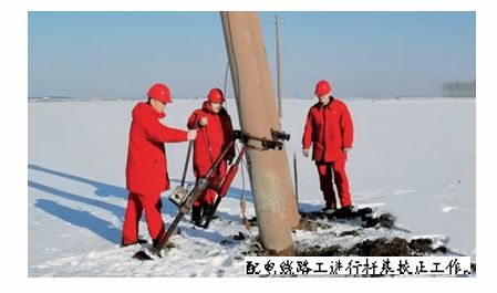 当天,他们要为患有“强直性脊柱炎”的杆基做“手术”,“该条线路‘先天不足’,因为线路横跨整座池塘,土质潮湿松软,杆基经常出现倾斜状况,这也是油田外围电网需要‘冬治’的‘常见病’。”赵红伟说。