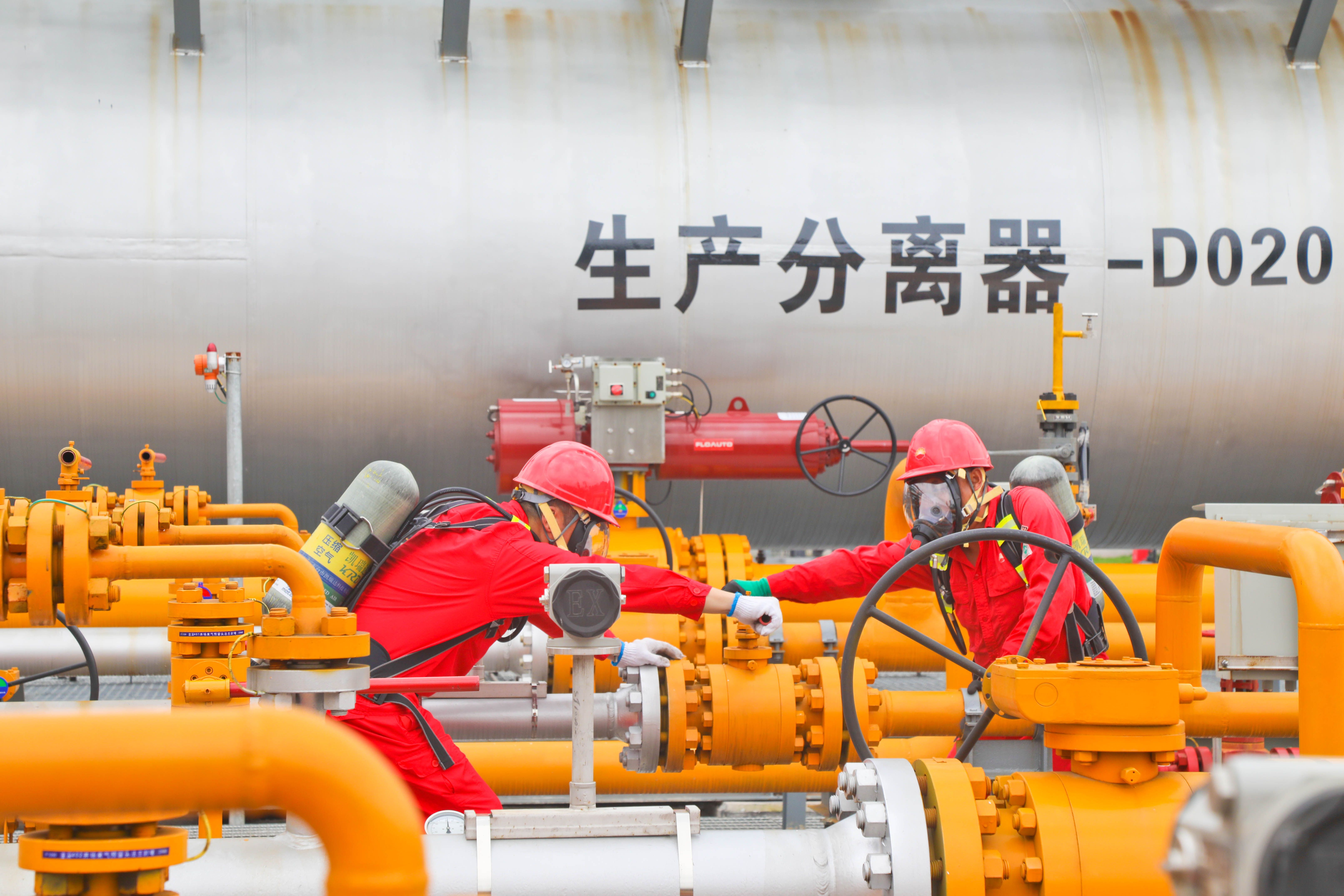 重庆分公司合深4集气脱水站员工正在调试阀门。