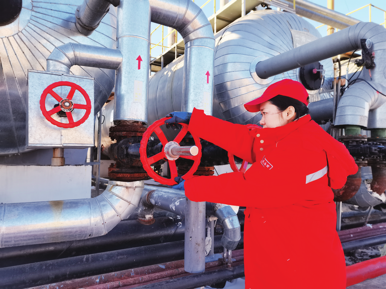 图为第三作业区员工在仔细检查二合一加热炉的掺水流量和温度。