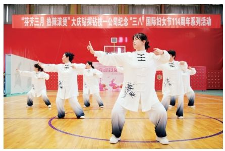 3月8日,钻探工程公司钻技一公司举办了“芬芳三月,热辣滚烫”工间操大赛,来自一线的女工代表们神采飞扬,在一跳一跃间展现了昂扬向上的精气神,焕发出无限活力。大家纷纷表示,今后要加强日常锻炼,将健康生活、快乐工作理念融入到日常。