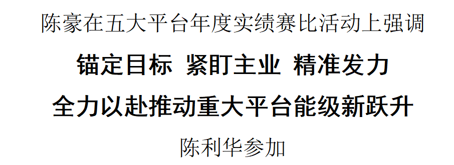 陈豪对五大平台和柯桥未来之城过去一年的工作逐一作了点评,充分肯定了成绩,指出了短板和不足,并就做好新一年的工作提出要求。他指出,过去一年,五大平台围绕“全省竞跑”目标,重点聚焦项目招引和项目建设,各项工作取得很多亮点,在高质量发展新征程中充分发挥了主战场和主力军作用,同时通过五大平台实绩赛比,进一步浓厚了全区双招双引和大抓项目的良好氛围,优化了区、平台和镇街三级联动、高效协作的工作体制机制,激发了全区上下“大兴实干文化,永葆竞跑风姿”的干事创业氛围。新的一年,五大平台要不断做大做强主导产业,全面提升平台发展能级,为实现“全省竞跑、示范先行”目标任务贡献更大力量。