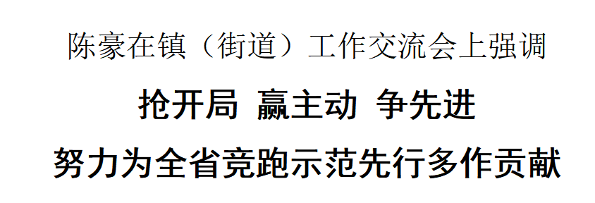 陈豪充分肯定各镇(街道)工作取得的成绩。他指出,过去一年,各镇街坚持实干实绩、敢为人先,坚持与时俱进、大胆探索,坚持攻坚克难、下足功夫,取得了一个个高分报表,推动了一批批改革成果,在细化工作颗粒度上走在了前列。今年是疫情防控政策调整后的首战之年,也是全力拼经济的关键之年,各镇街要认真贯彻落实区委二届三次全会和区“两会”部署要求,按照“五大行动”具体路径,拿出敢争第一、敢为第一的魄力,努力在谋划上先人一步、在招数上快人一拍,力争抢得先机、赢得主动,为柯桥“全省竞跑、示范先行”多作贡献。
