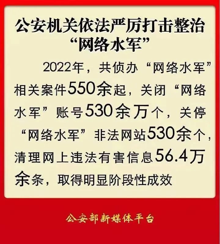 公安机关2022年关闭“网络水军”账号530余万个、非法网站530余个