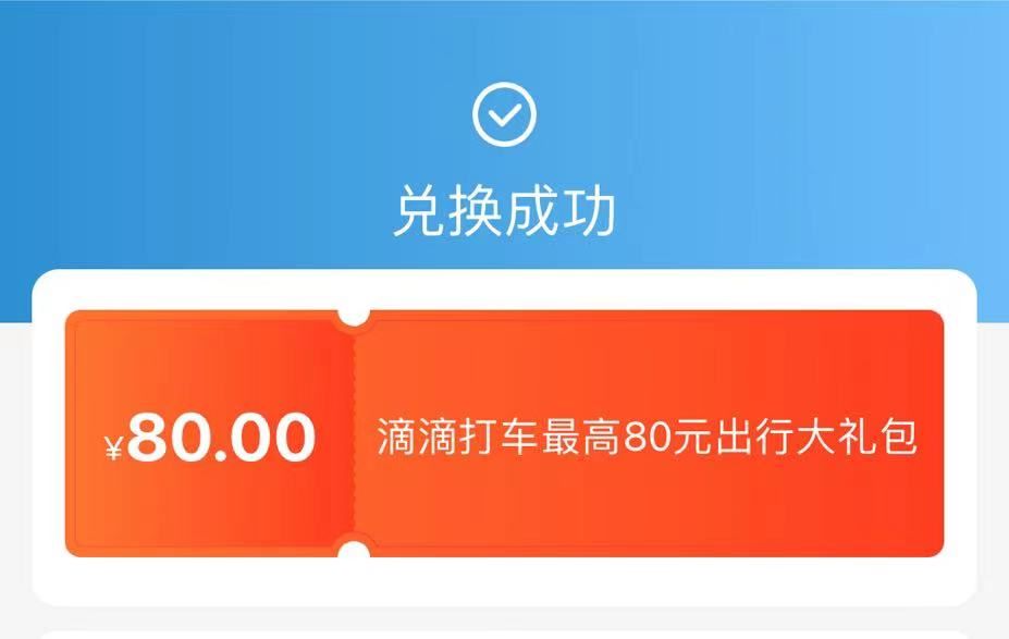 也有萌新粉丝10积分兑换了滴滴打车出行礼包