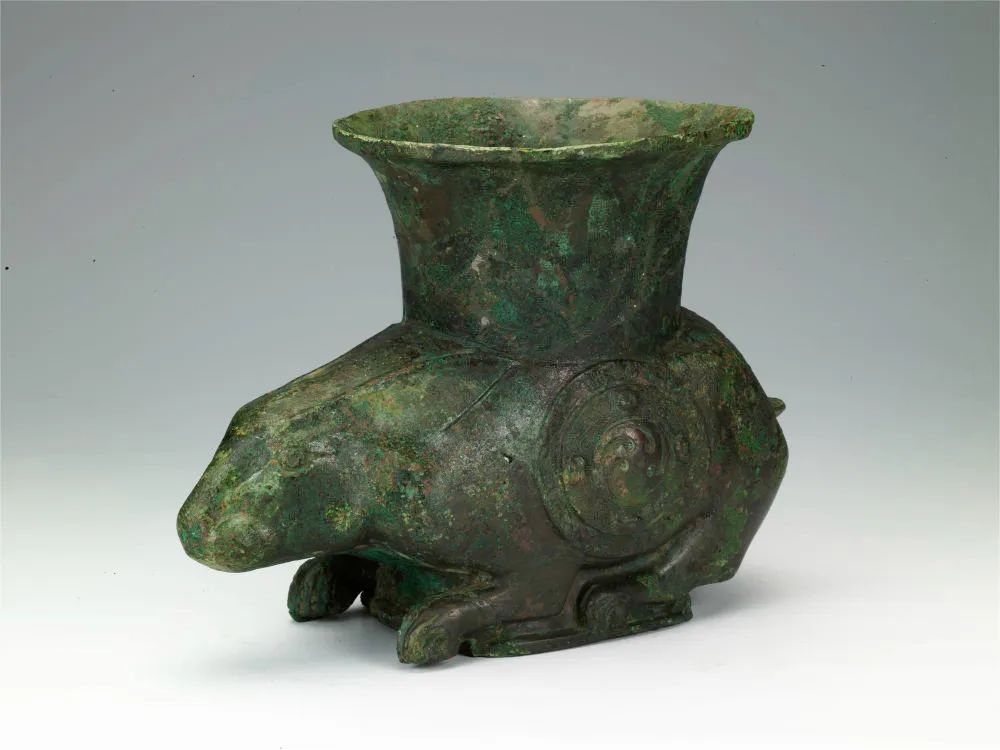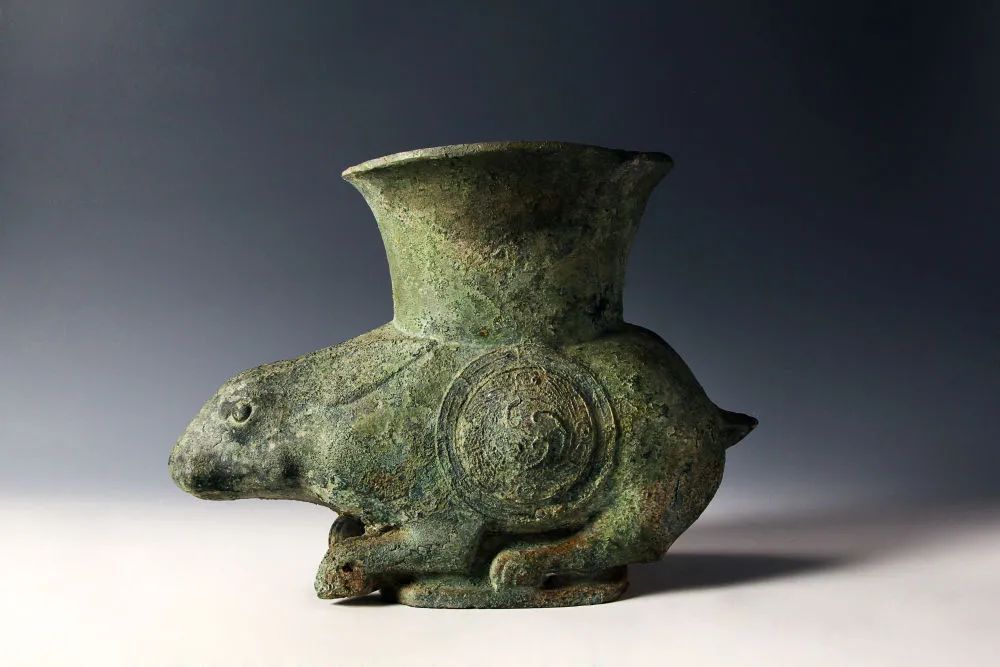 在山西省晋国博物馆内,陈列着4件兔尊,两大两小、两种造型。一只大兔尊匍匐在一个矮长方形器座上,背上立喇叭形口。另一只大兔尊,背上开长方形口,口上有盖,它四腿蜷曲,双耳向后并拢,似要跳跃,其余2只小兔尊跟它造型相同。它们出土于同一座墓葬,像极了一个四口之家。
