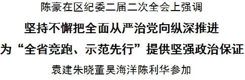 陈豪指出,习近平总书记在二十届中央纪委二次全会上的重要讲话,为在新时代新征程一刻不停推进全面从严治党、党风廉政建设和反腐败斗争提供了根本遵循。省纪委十五届二次全会深入分析了当前全省党风廉政建设和反腐败斗争的形势,明确提出了今年全面从严治党工作的主要任务和具体要求。市纪委九届二次全会要求全力推动全面从严治党向纵深发展,为勇闯中国式现代化市域实践新路子提供坚强保障。全区各级各部门要认真对标对表中央纪委和省、市纪委全会精神要求,准确把握形势、坚定信心决心,持续推进自我革命新实践、展现清廉柯桥建设新作为。
