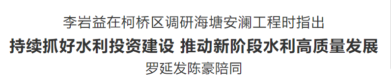 在调研中,李岩益对柯桥区重大水利项目的建设工作予以了充分肯定,他指出,要持续抓好水利投资、办好民生实事、统筹水利资源等要事,守住防汛防台抗旱底线、水利工程安全底线,推进项目清单化管理,全力以赴加快水利基础设施建设,在安全施工的基础上有效保护海塘生物多样性和环境改善,积极做好“生态海塘”创建工作,推动新阶段水利高质量发展。