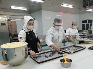 本次培训共计完成制作30种产品,其中西点类产品11种;蛋糕类产品10种;干点类产品6种;面包类产品3种。公司领导对产品进行了现场试餐点评。