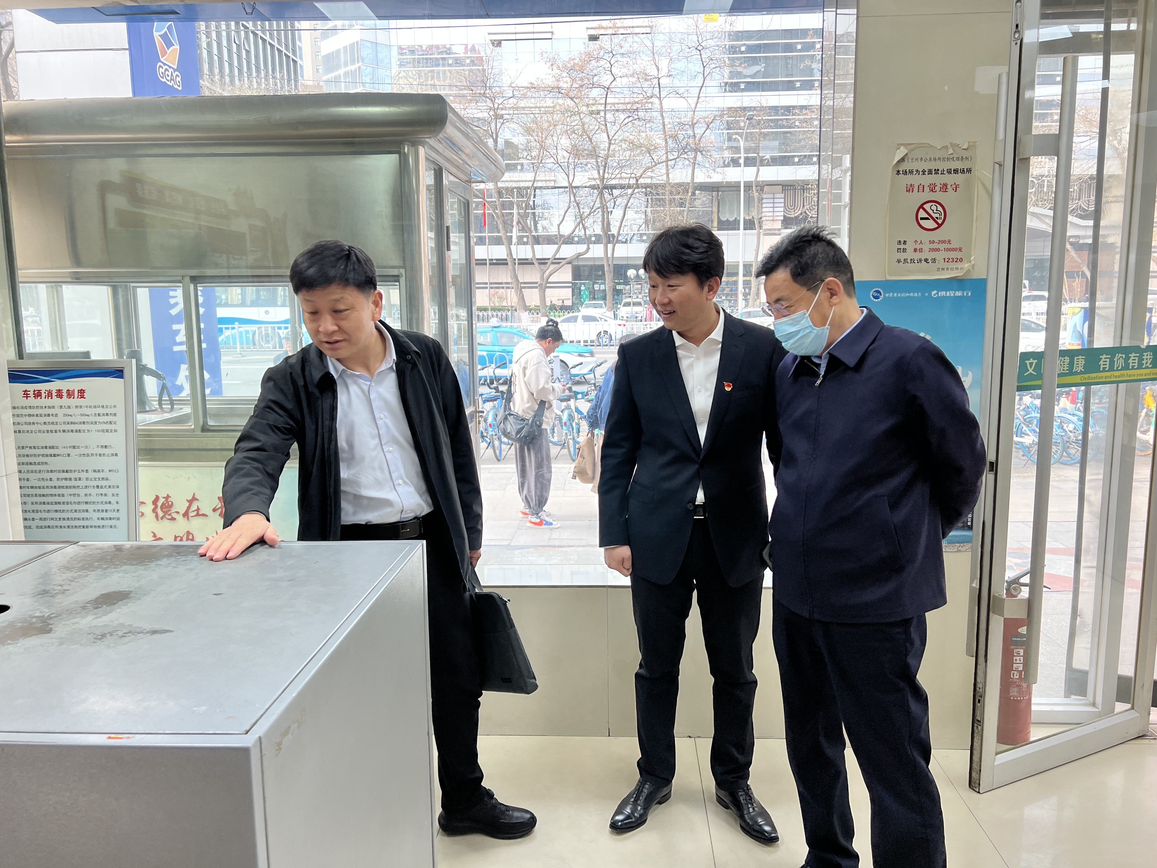 调研组来到民航售票处售票大厅,详细查看了现场销售、线上产品推广、行李安检等情况,并给予工作指导。