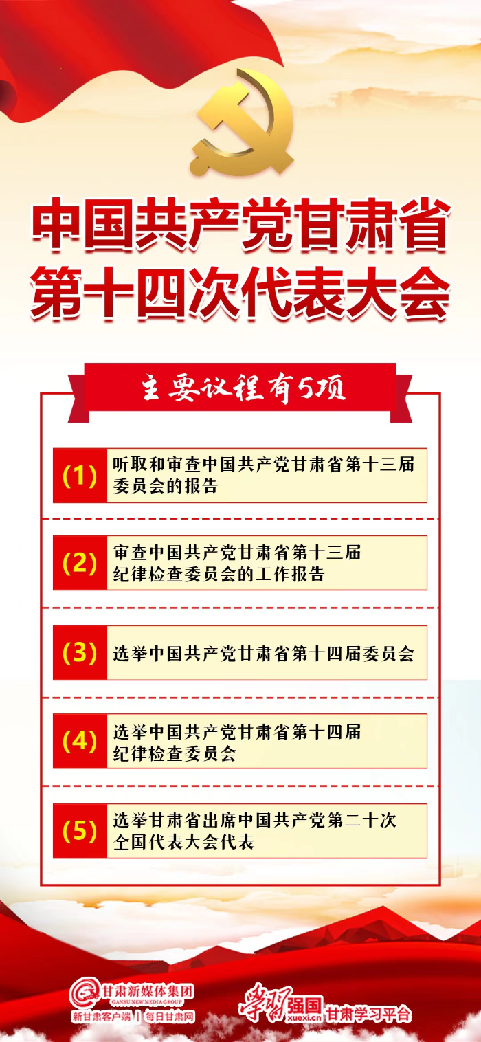 【微海报】甘肃省第十四次党代会主要有5项议程