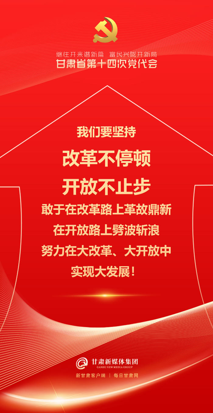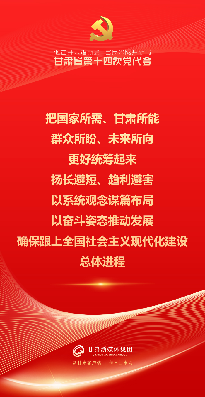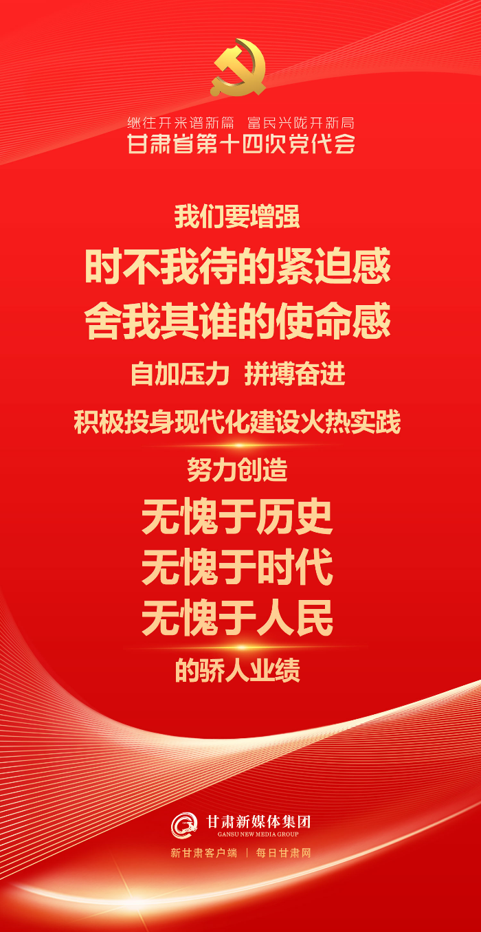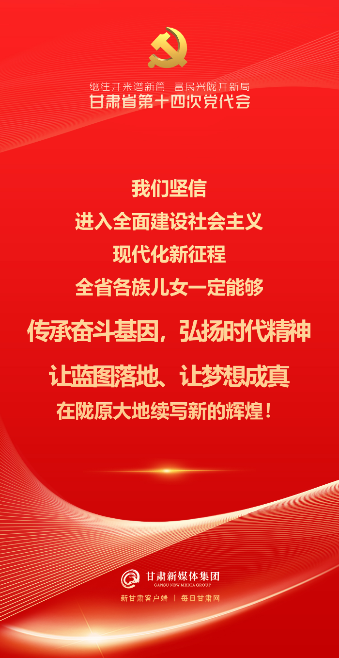 5月27日,中国共产党甘肃省第十四次代表大会在兰州隆重开幕。尹弘代表中国共产党甘肃省第十三届委员会向大会做报告。报告字字铿锵,催人奋进!一起来看~