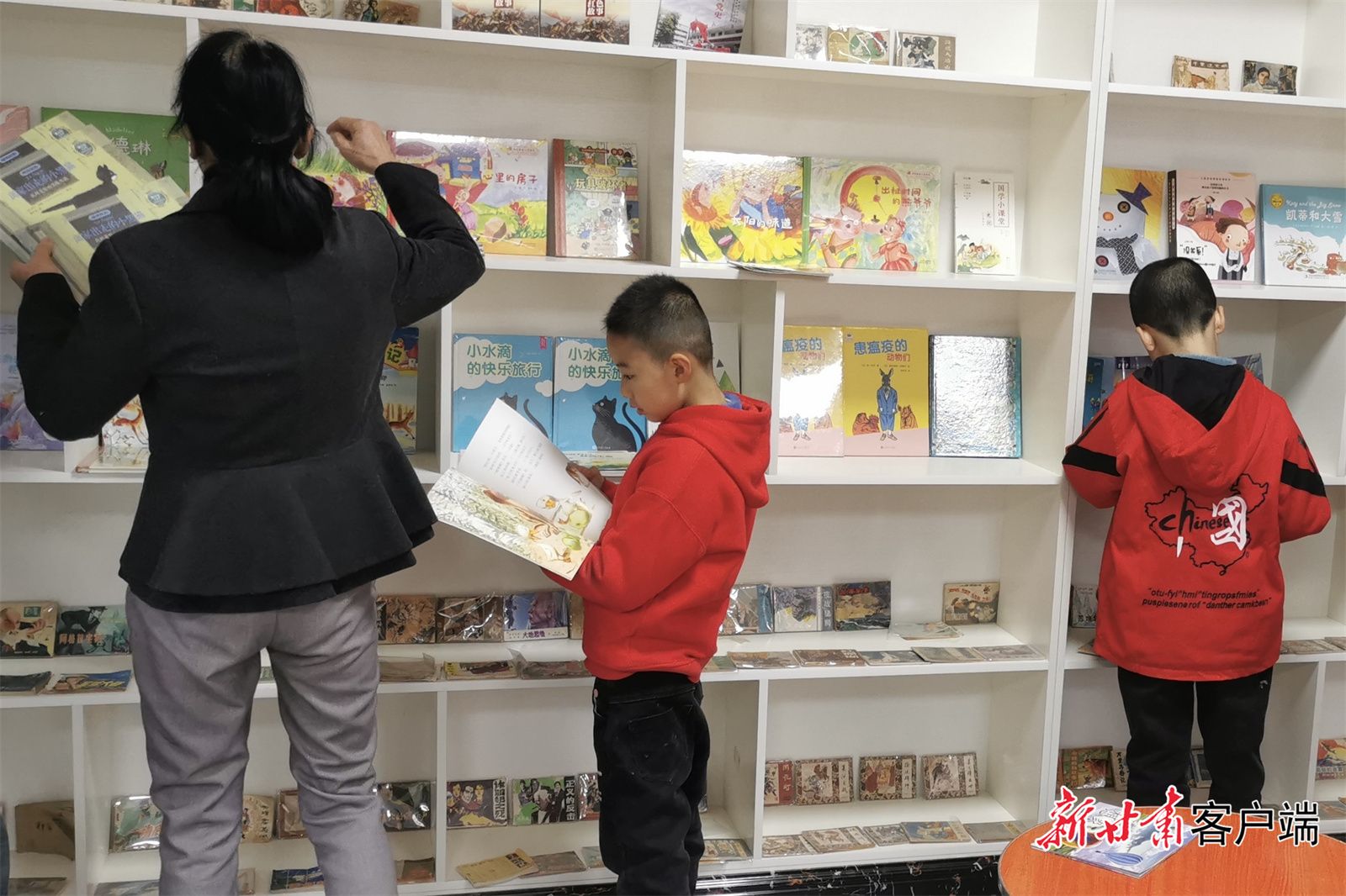 孩子们在书屋中认真阅读。