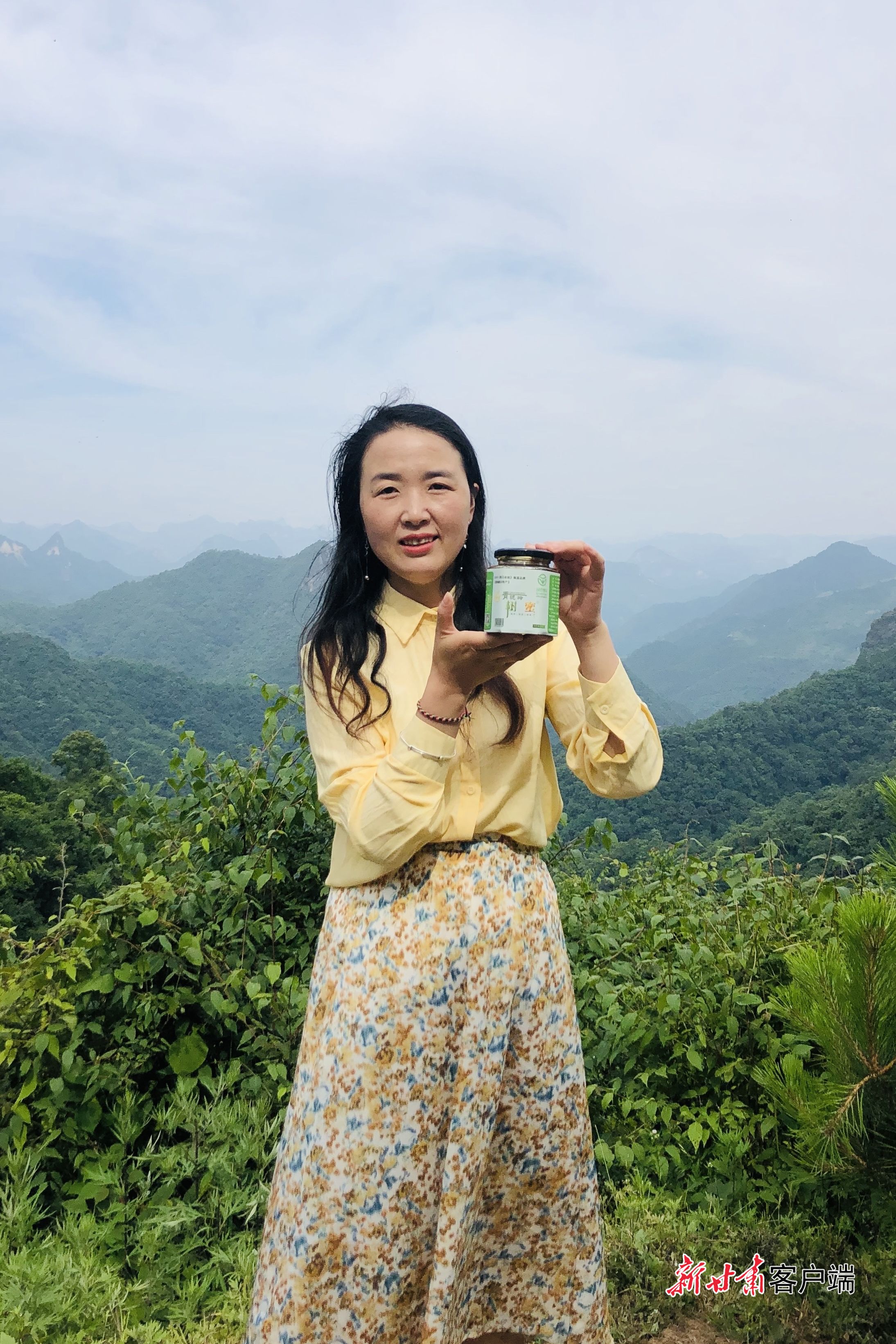 梁倩娟在陇南的绿水青山中对农家土蜂蜜进行直播带货。