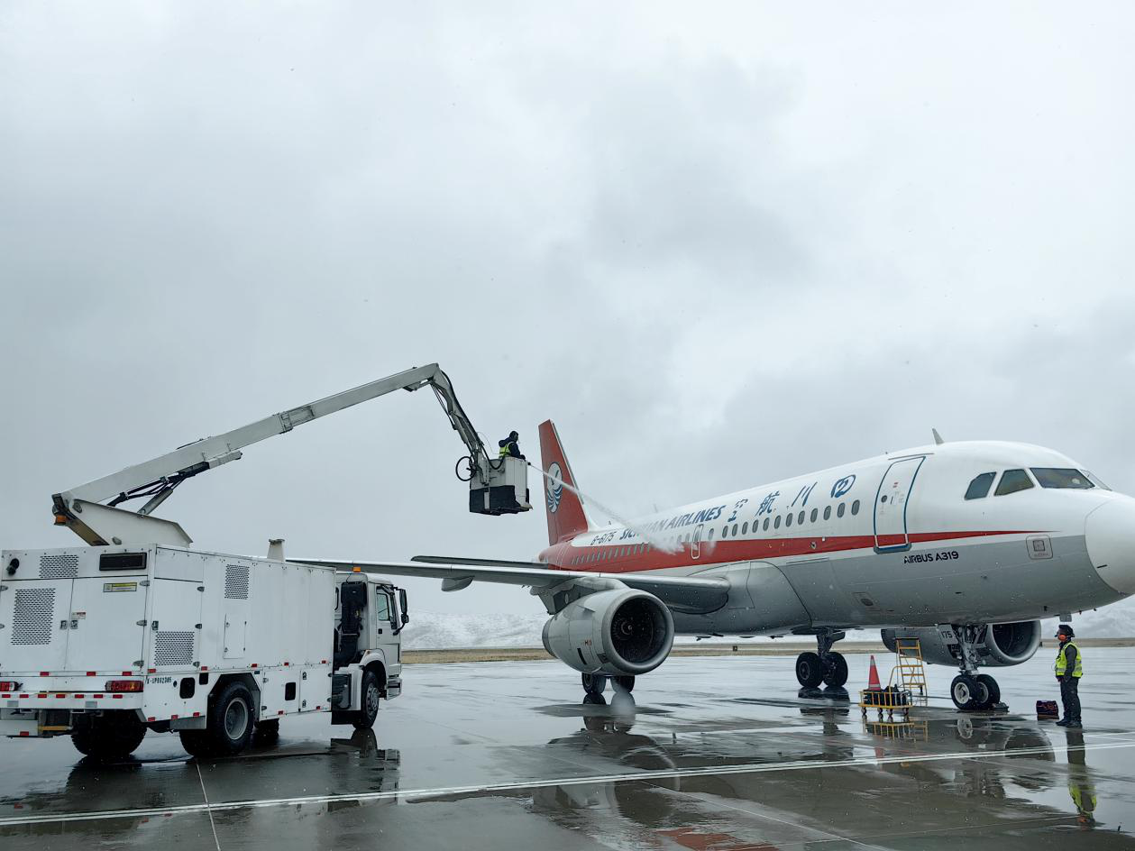 4月29日,受冷空气影响,甘南地区突降暴雪,面对特殊天气甘南维修室积极应对,迅速部署,圆满完成此次除冰任务,全力保障航班正常起降。