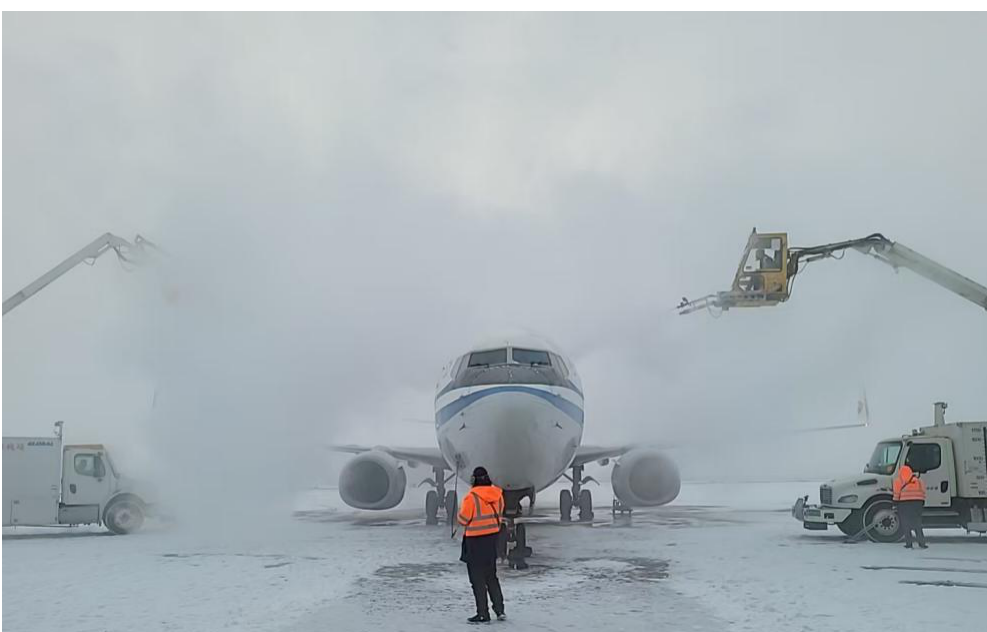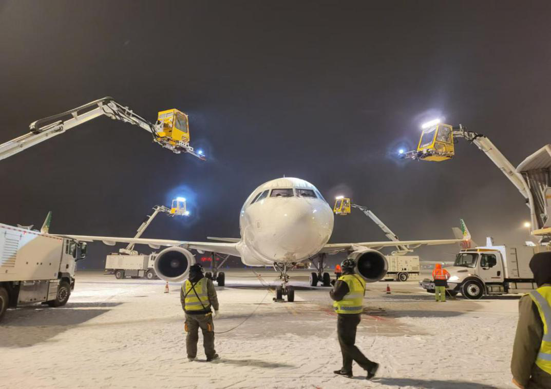 本次降雪天气,集团飞机维修公司共投入人力60人次,出动除防冰车12台。截止25日12:00时,公司共保障除冰雪航班39架次,其中执行航前预除雪9架,执行航前正常除雪21架,过站除雪保障9架。