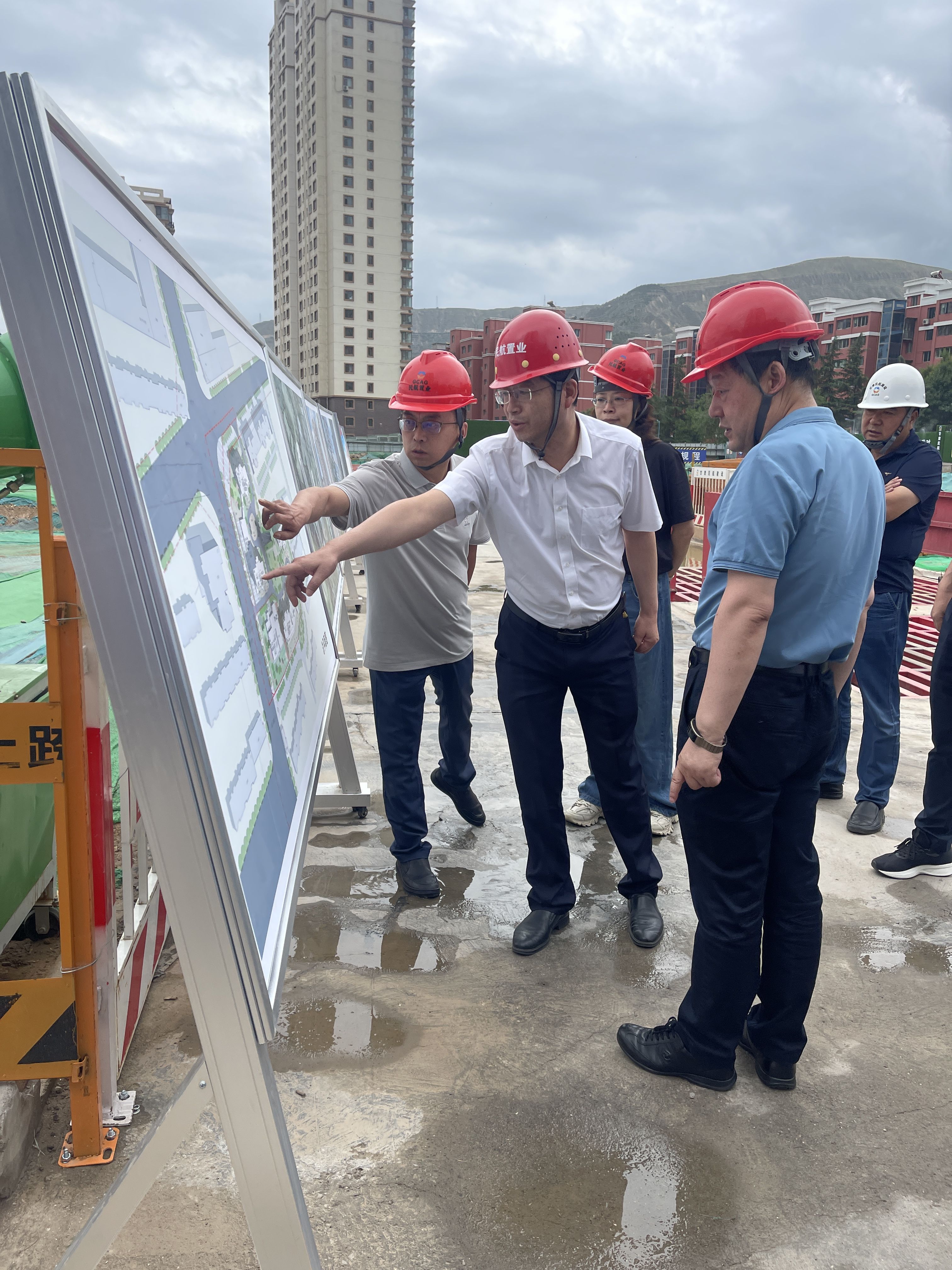 调研组一行前往“云尚雅居”项目部进行实地调研,听取了项目部负责人关于现场安全、施工进度及后期运营思路等相关情况的汇报。