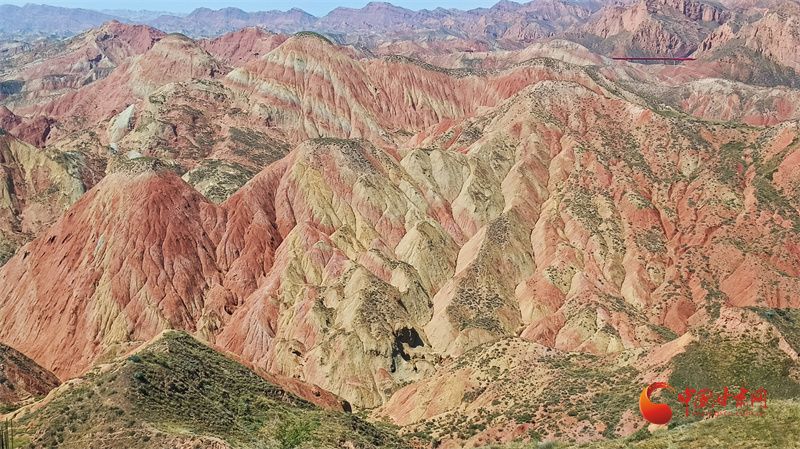 时值盛夏,水墨丹霞山体顶部草木淡雅点缀更有名画意境,水墨丹青版的兰州丹霞值得游客期待。