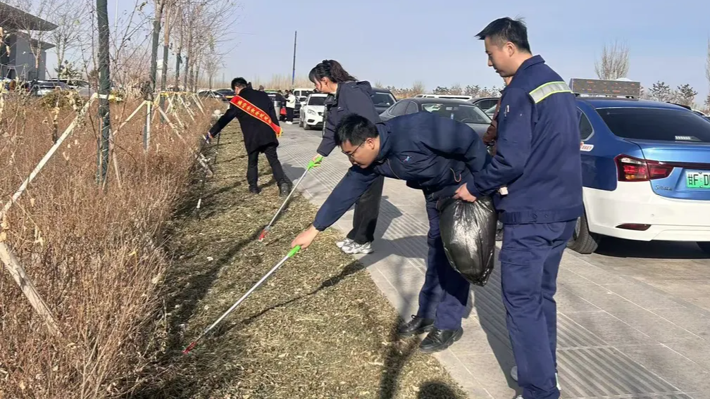 12月5日,嘉峪关机场公司团支部青年志愿者清理停车区垃圾。袁玉沛 摄