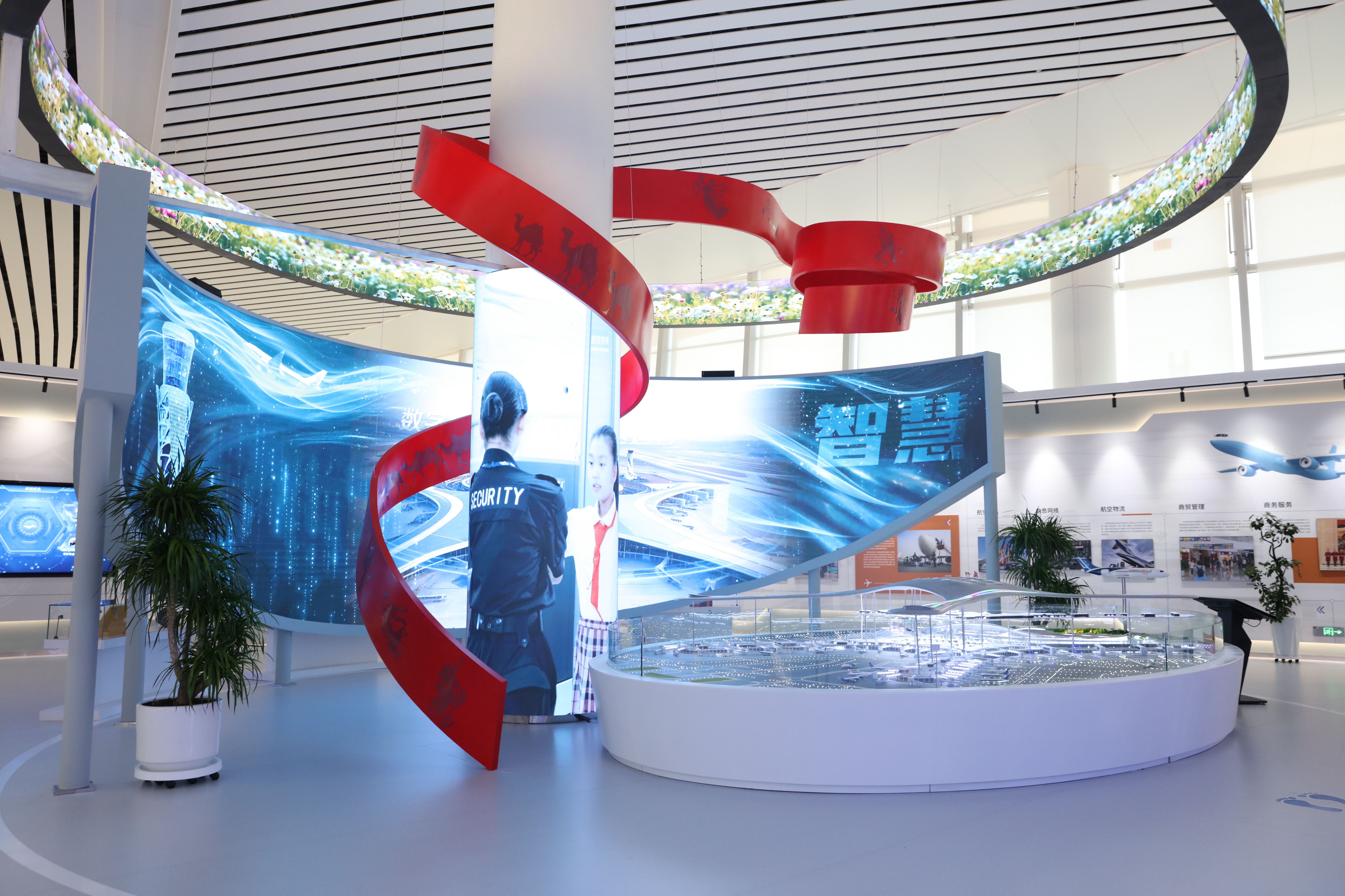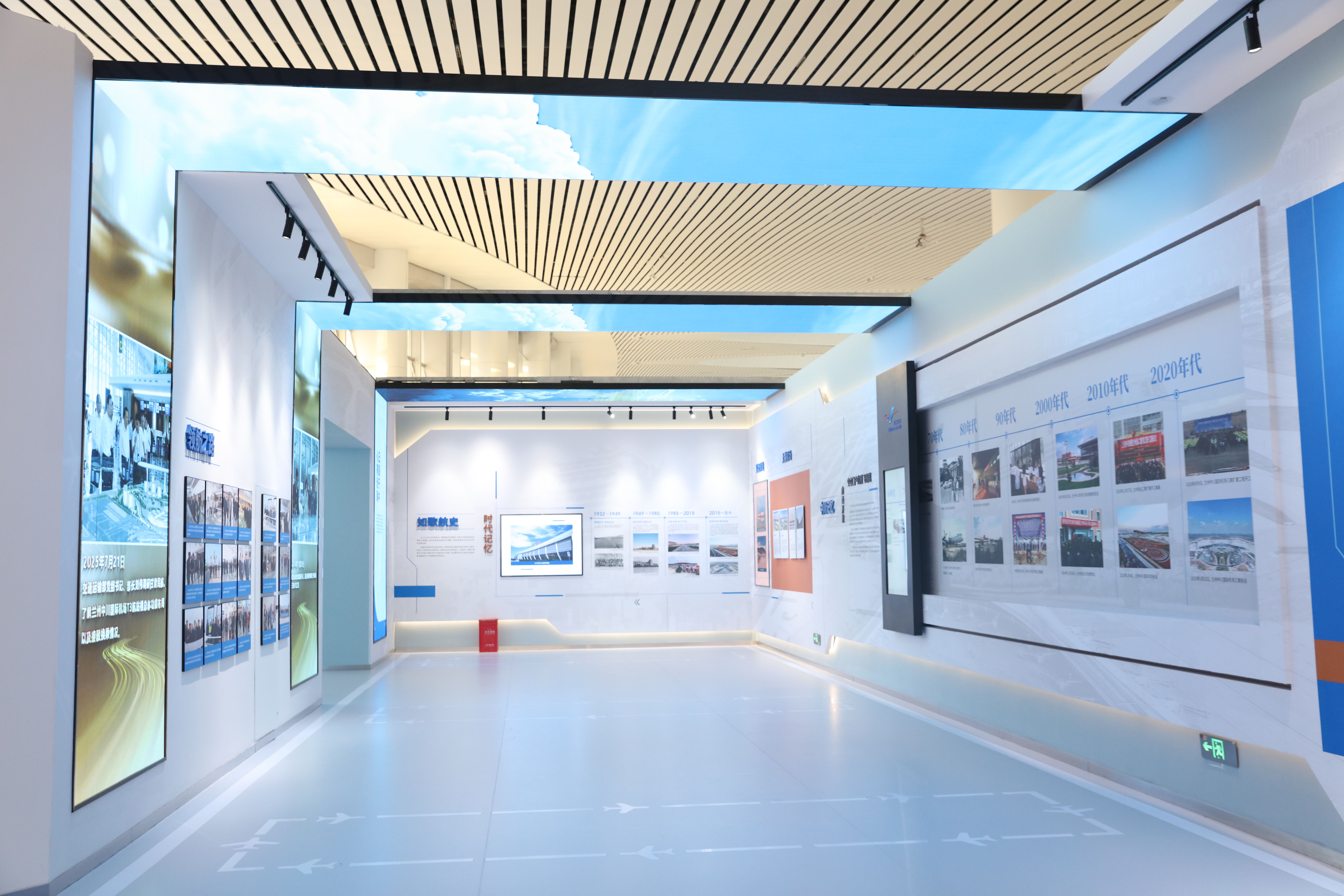 作为集团文化建设的重要里程碑,“人文展厅”深度融合地域文化与民航精神,以“飞天故里、黄河情怀、丝路新韵”为设计灵魂,全景式回溯甘肃民航近百年奋斗历程,聚焦兰州中川国际机场三期扩建工程与“四型机场”建设成果,运用滑轨屏、全息投影、数字沙盘、沉浸式影厅等前沿技术,打造可听、可视、可触、可感的观展体验,集现代化、数字化、人文性于一体,生动呈现甘肃民航人扎根陇原、筑梦蓝天的奋斗历程与发展成就。
