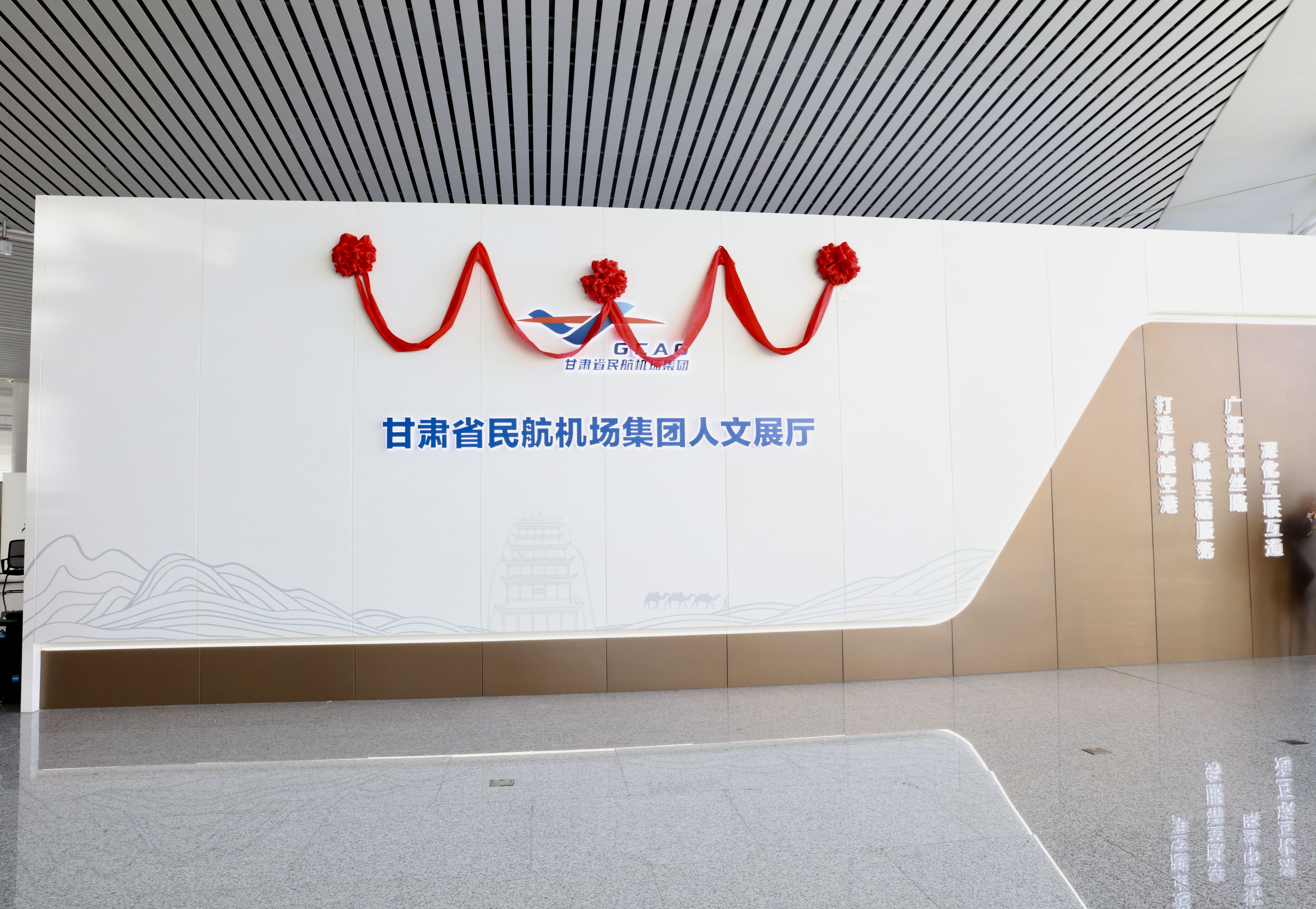 12月29日,甘肃省民航机场集团人文展厅在兰州中川国际机场 T3 航站楼正式开馆。展厅以“万流归中”为主题,深度融合丝路元素、黄河精神与民航精神,不仅是集团人文机场建设的重要成果,也为往来旅客与市民打造了一处可感可触的文化机场新地标。