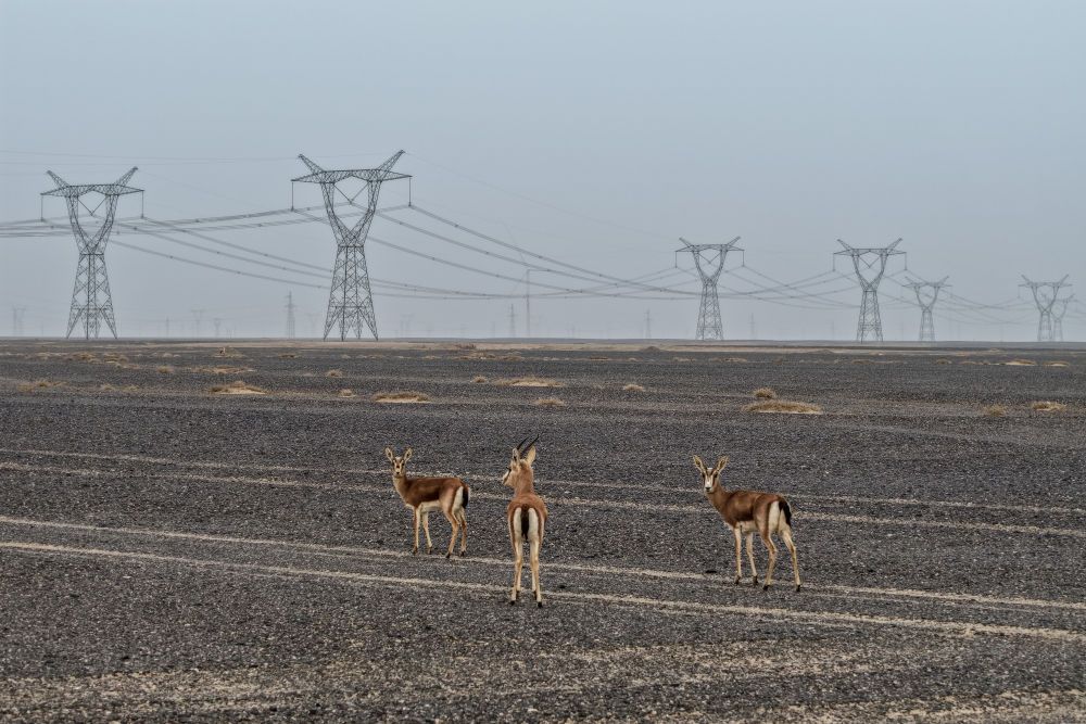 记者离开瓜州时,恰逢一群鹅喉羚在电网铁塔下活动,绘就出一幅野生动物与风电设施和谐共处的生态画卷,也见证着这片戈壁荒漠向绿色能源高地的华丽转变。