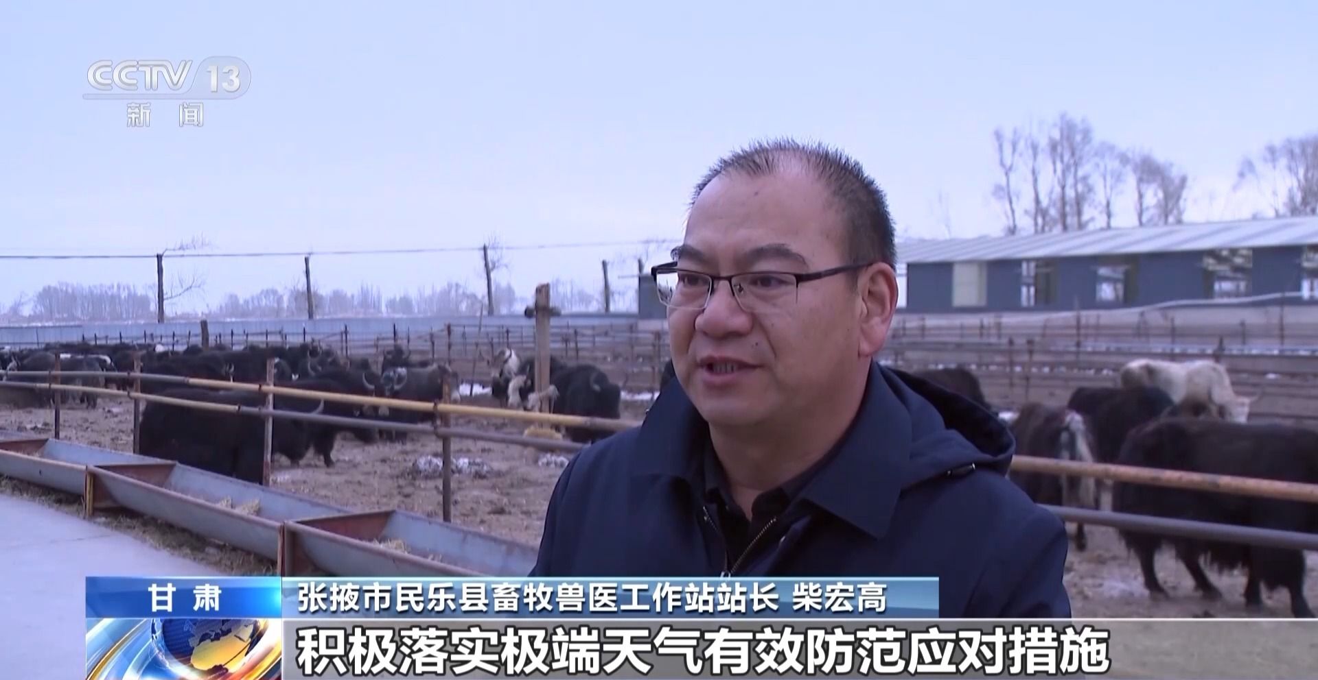 在甘肃民乐万头牦牛育肥基地,畜牧兽医站工作人员提前指导养殖户做好棚舍加固、增温保暖以及疫病防控等,确保牲畜安全越冬。