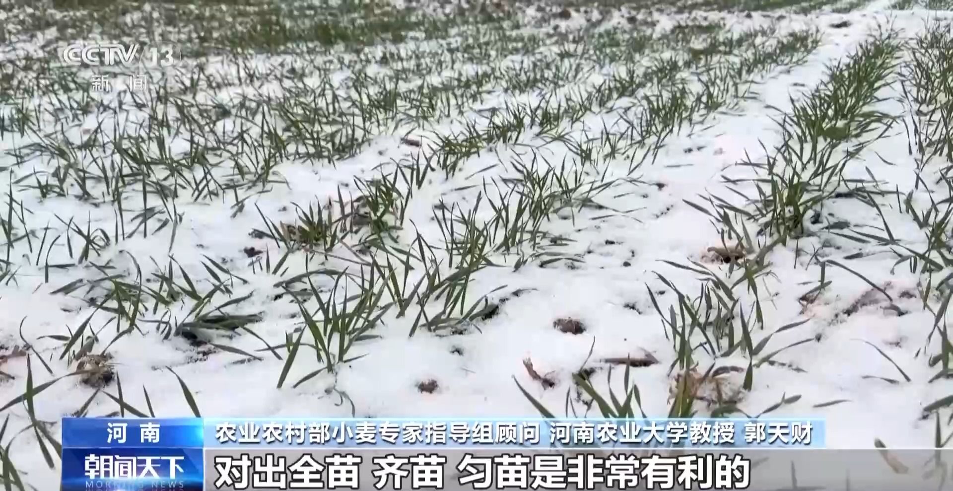 农业农村部小麦专家指导组顾问 河南农业大学教授 郭天财:这场雨雪寒潮天气对小麦生长总体是有利的,可以对麦苗进行抗冻性锻炼,灭杀一部分田间的虫卵和病菌,有效改善补充了土壤墒情,对出全苗、齐苗、匀苗非常有利。