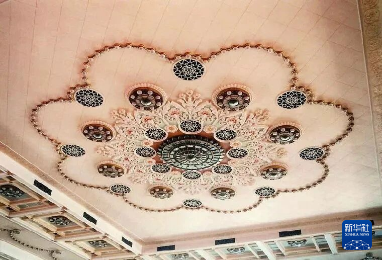 1959年,常沙娜再次接到任务,为人民大会堂宴会厅设计天顶装饰。她想到了熟悉的敦煌藻井图案。经过多次修改,她成功地将敦煌图案的视觉美和人民大会堂的建筑功能、材料特性、工艺技术融汇打通,创造性地完成了任务。
