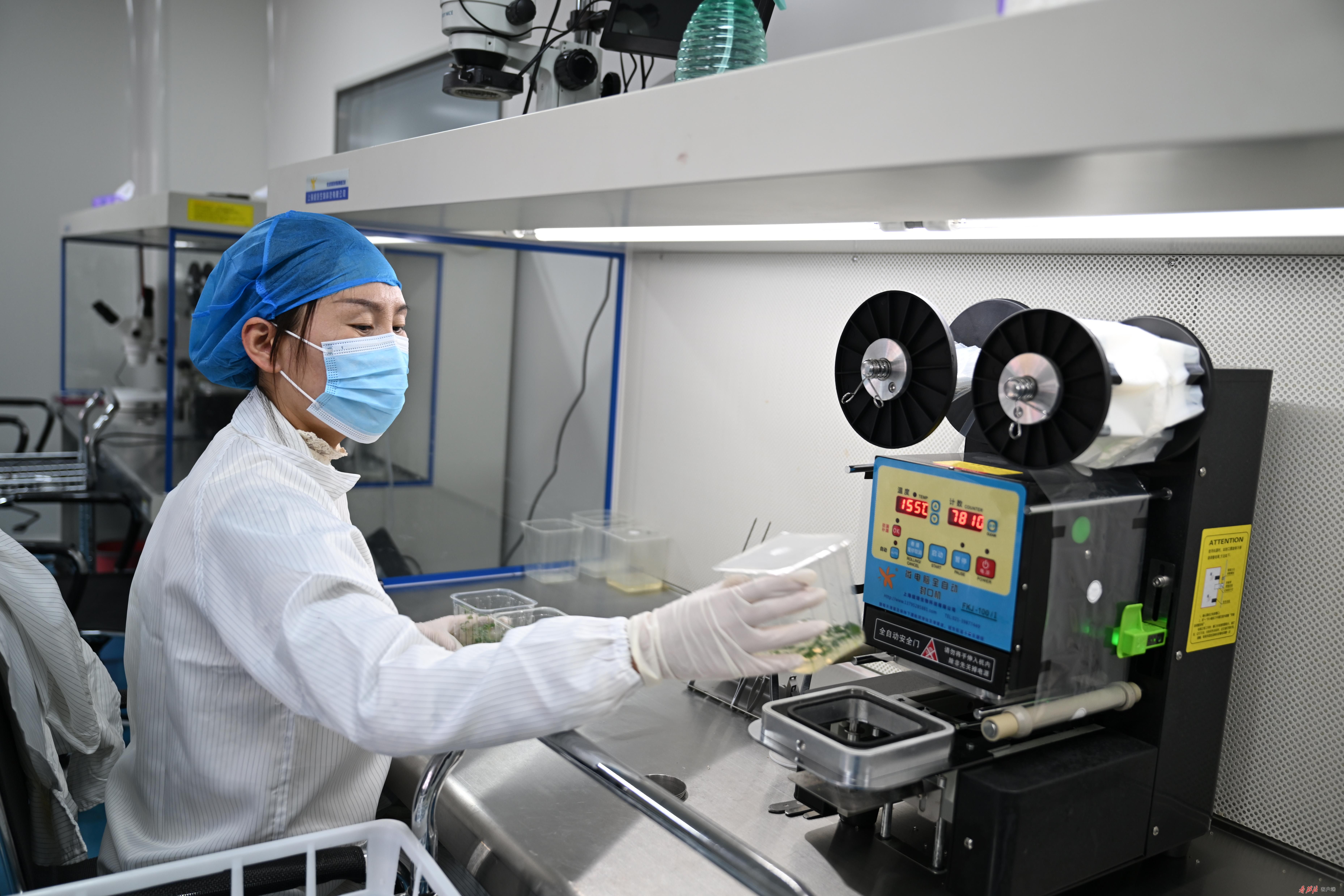 据了解,该产业园核心突破在于颠覆传统的生产技术,通过雾培工厂化系统,自动喷洒营养液,单株结薯量达40-50粒,较传统基质提高20-30倍,并有效阻断土传病害,实现周年生产,年产脱毒瓶苗1000万株、原原种4000万粒。