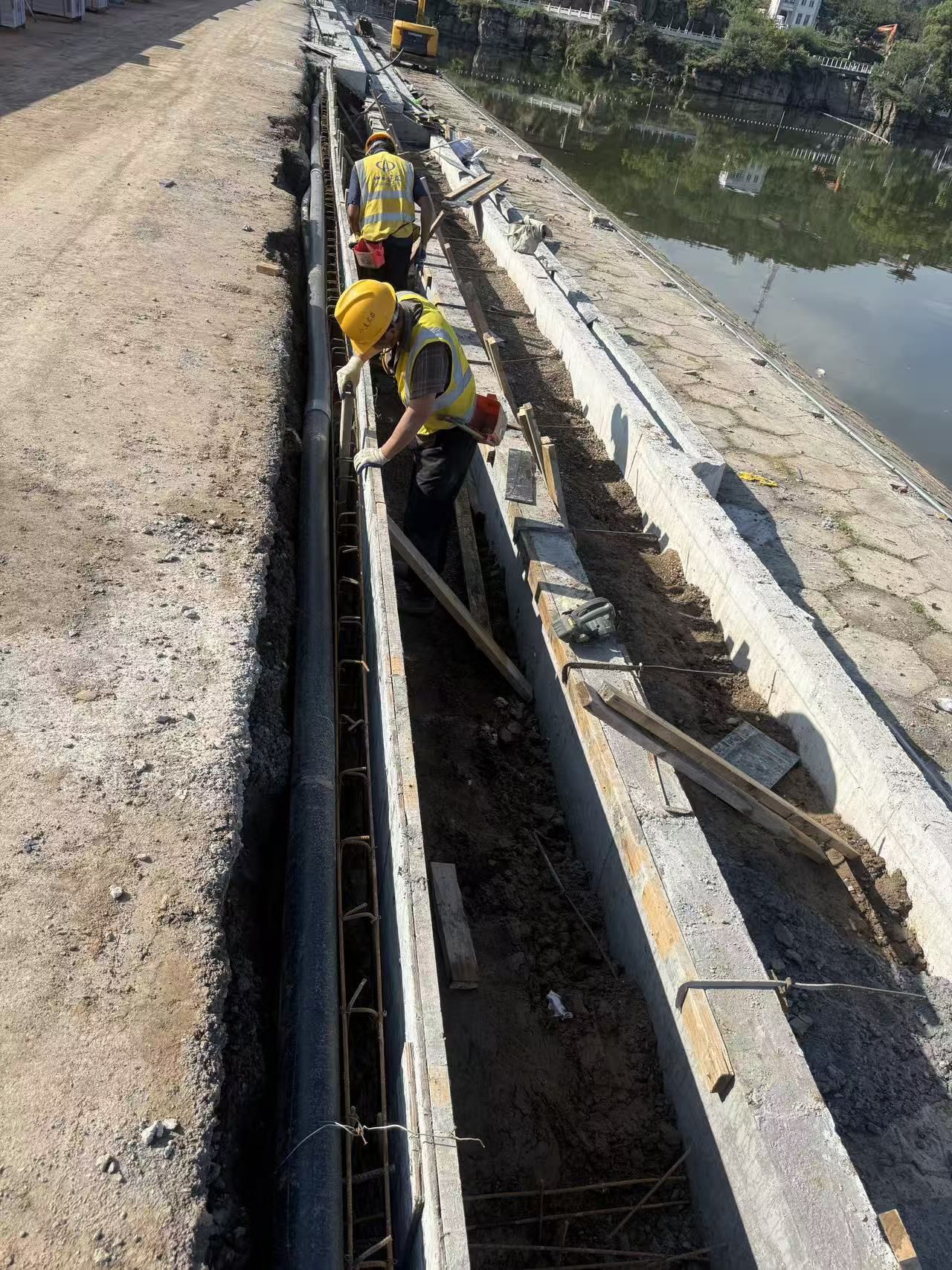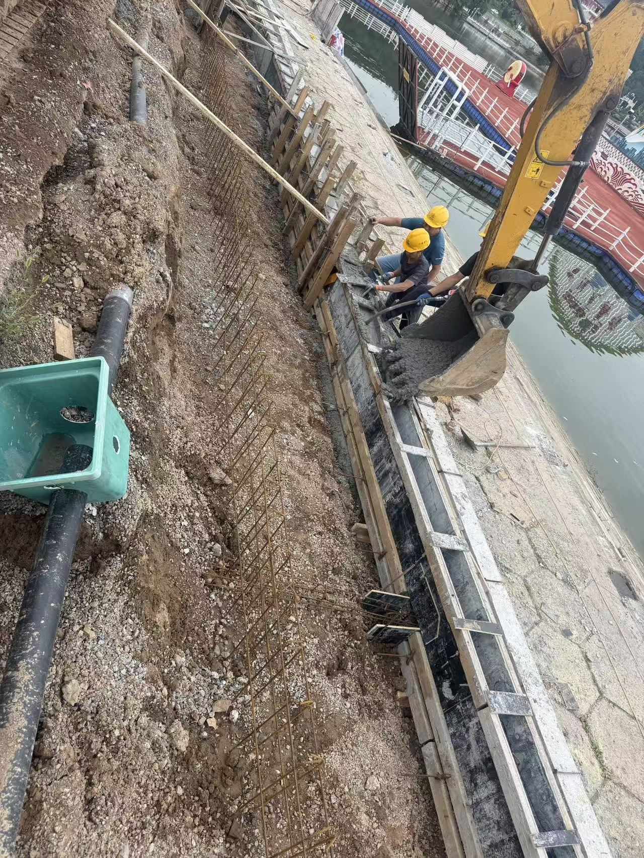 ●沁县环湖路(西湖东堤)改造项目:1、西湖西侧人行道坝坡台阶、花池基础模板安装及混凝土浇筑施工。2、西侧坝坡基础开挖接近尾声。
