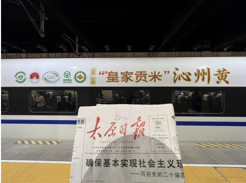 国家地理标志产品沁州黄小米冠名高铁事宜正式敲定,“沁州黄小米号”D5374次高铁列车顺利上线运行。该列车沿运城至大同,途经太原、朔州东等多个站点,以“中国速度”传递山西特色农产品魅力。