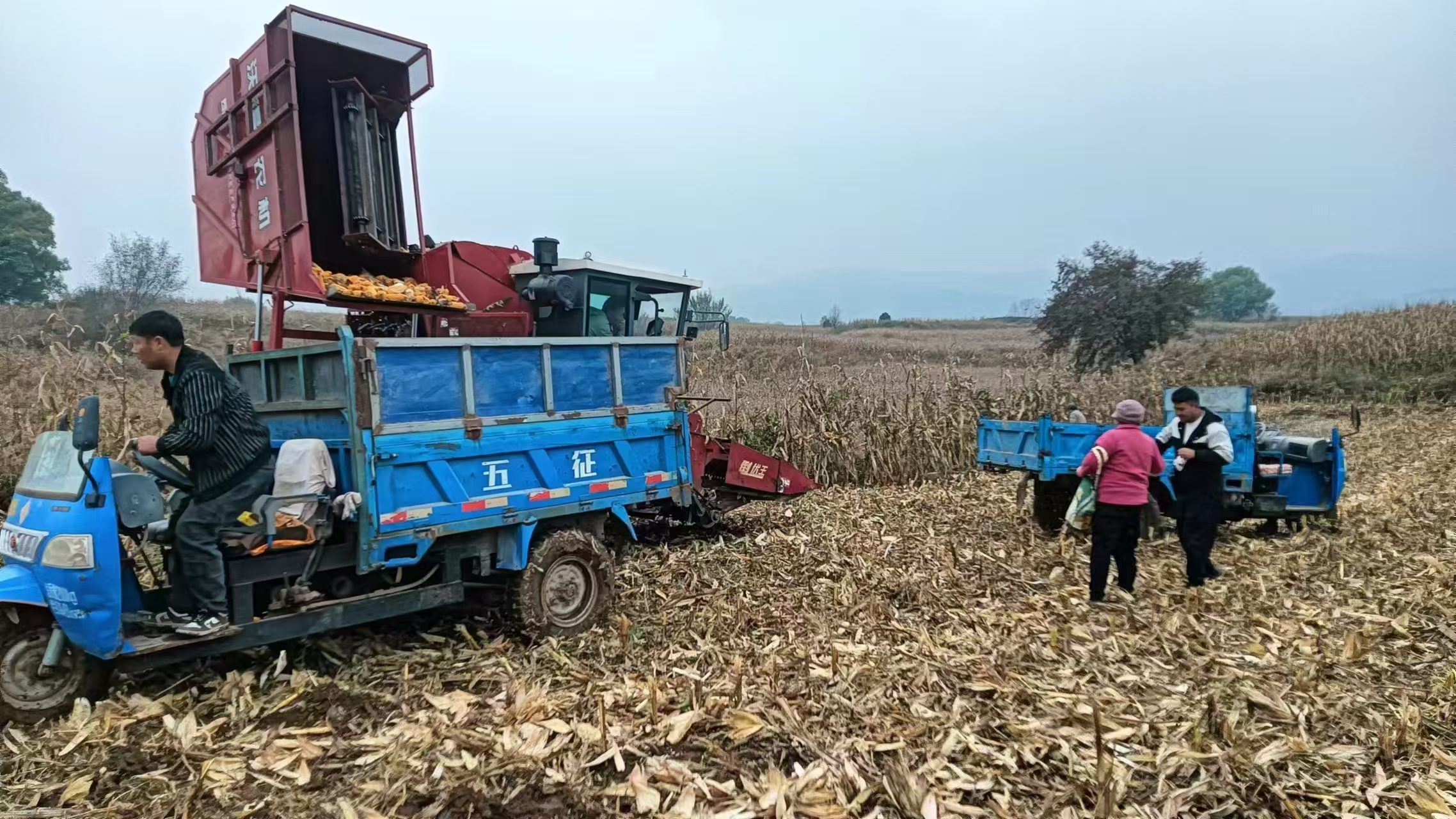 抢收抢种保丰收,筑牢粮食安全底线。立足“秋收秋种不等人”的紧迫形势,漳源镇将全会精神中“提升农业综合生产能力”的要求转化为具体行动,打响“双抢”攻坚战。镇党委靠前指挥,成立由党员干部组成的“助农攻坚队”,精准调配50台收割机、141台拖拉机,通过“人机协同、分片推进”模式,发动群众抓住降雨间歇抢收玉米、高粱、谷子等作物,实现“能收尽收、颗粒归仓”。同步推进秋种工作,指导农户科学选种、适墒播种,目前已完成秋粮收获3万余亩、冬小麦播种200余亩,牢牢守住粮食安全“压舱石”。
