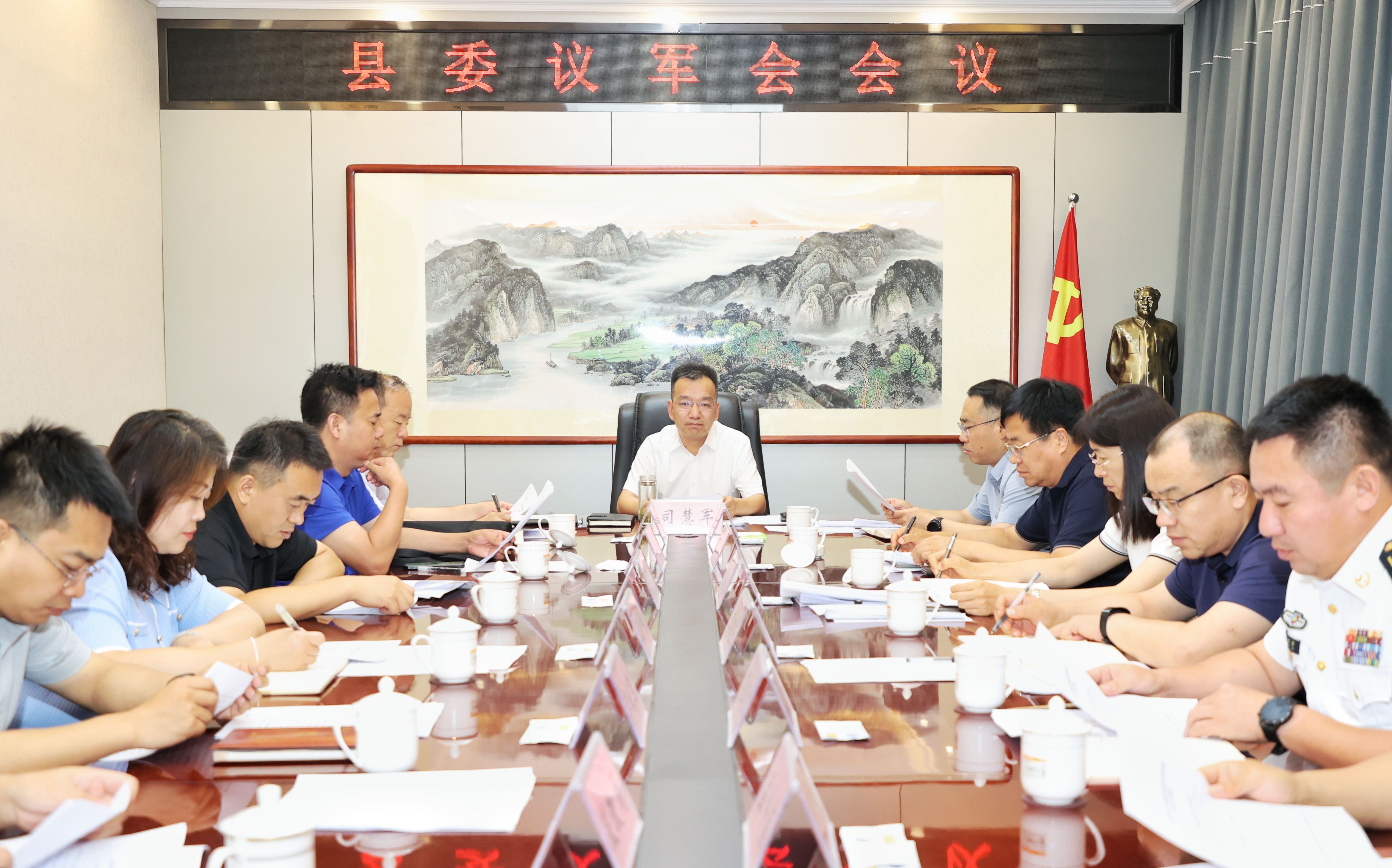 7月29日,县委书记司慧军主持召开县委议军会议,传达学习习近平总书记关于国防和军队建设的重要论述,听取县人武部2025年上半年工作情况汇报,研究部署党管武装有关工作。县委副书记、县长李俊杰出席。李佩璋、高怀碧、周铁虎、焦会丽、姬伟岸、李晓东、王宇靖、张朝辉、李成君、孟令奎参加。