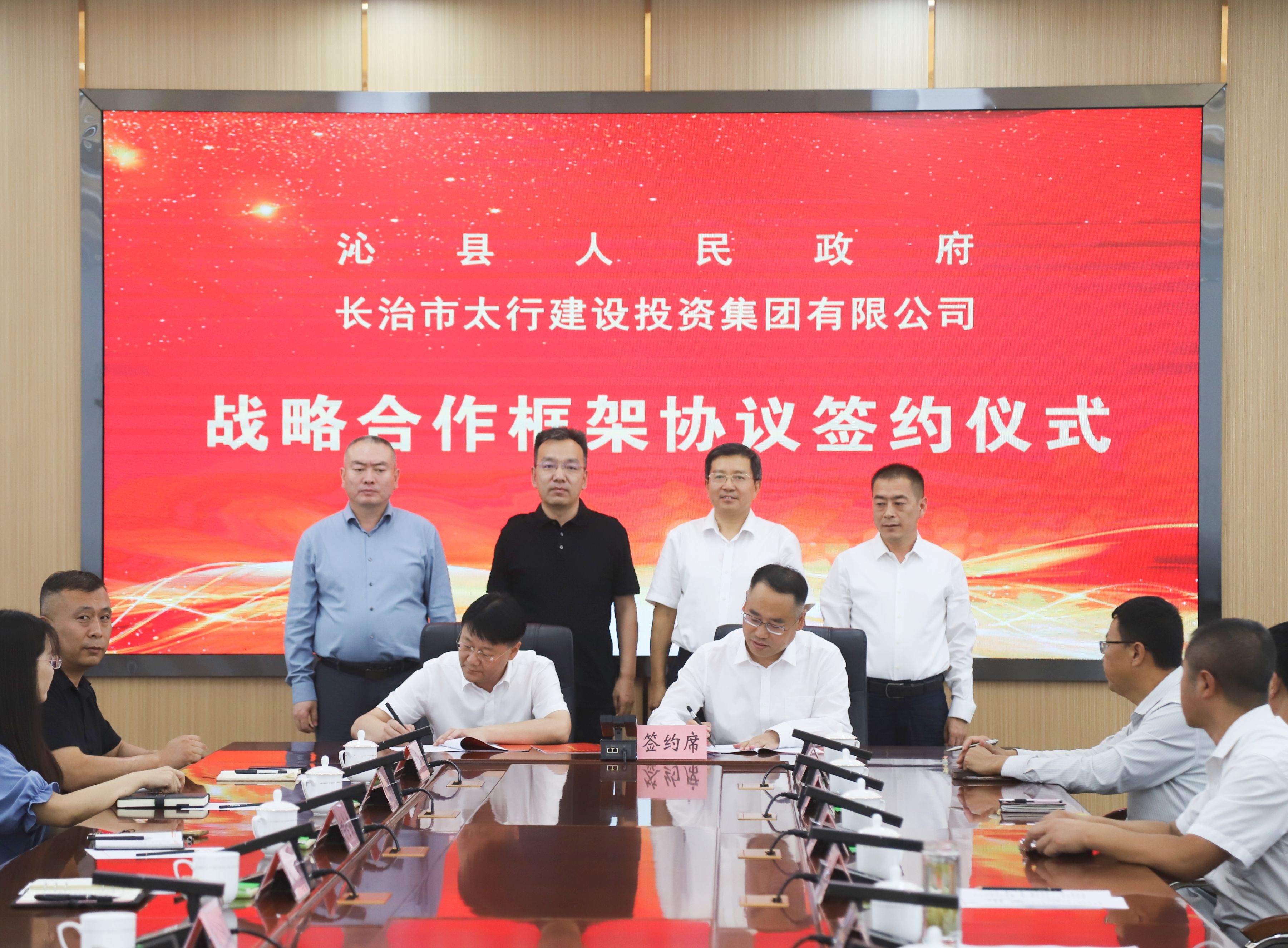 8月29日,沁县人民政府与长治市太行建设投资集团有限公司举行战略合作框架协议签约仪式。县委书记司慧军,太行建投集团党委书记、董事长李斌,县委副书记、县长李俊杰,太行建投集团党委副书记、副董事长、总经理王威,副县长冯宇出席签约仪式。