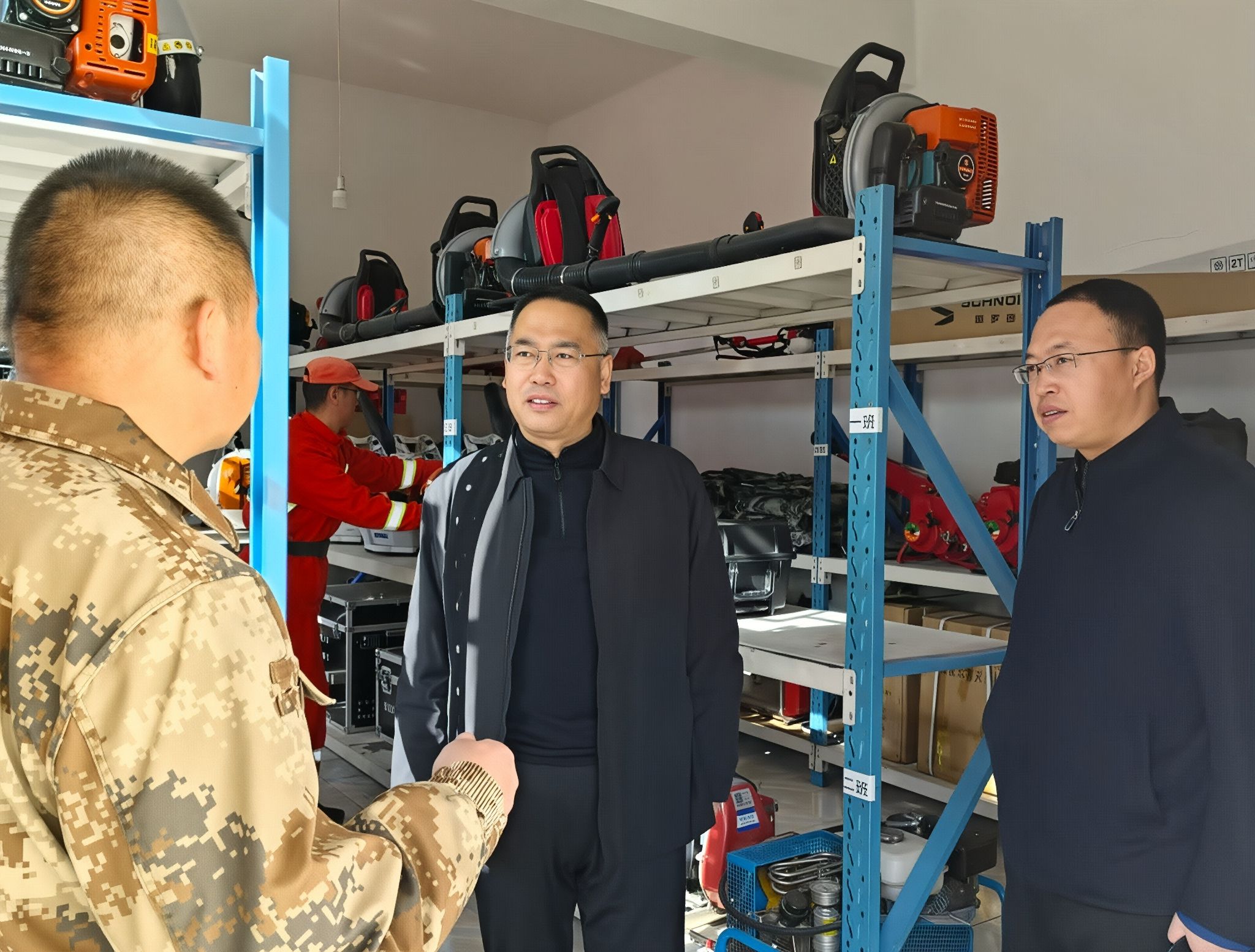 在县森林消防大队,李俊杰详细了解值班安排、物资储备和后勤保障情况。他指出,当前正值冬季森林防火关键时期,天干物燥、风力较强,火险等级逐步升高,防火形势严峻复杂。全县森林消防队伍必须始终保持高度警惕,持续强化应急能力建设,科学优化物资装备配置,做好日常维护并定期开展实战演练,严格落实值班备勤制度,健全快速响应机制,全面提升应急处置能力,确保一旦发生火情能够第一时间快速响应、有效处置,坚决守牢森林资源和人民群众生命财产安全防线。