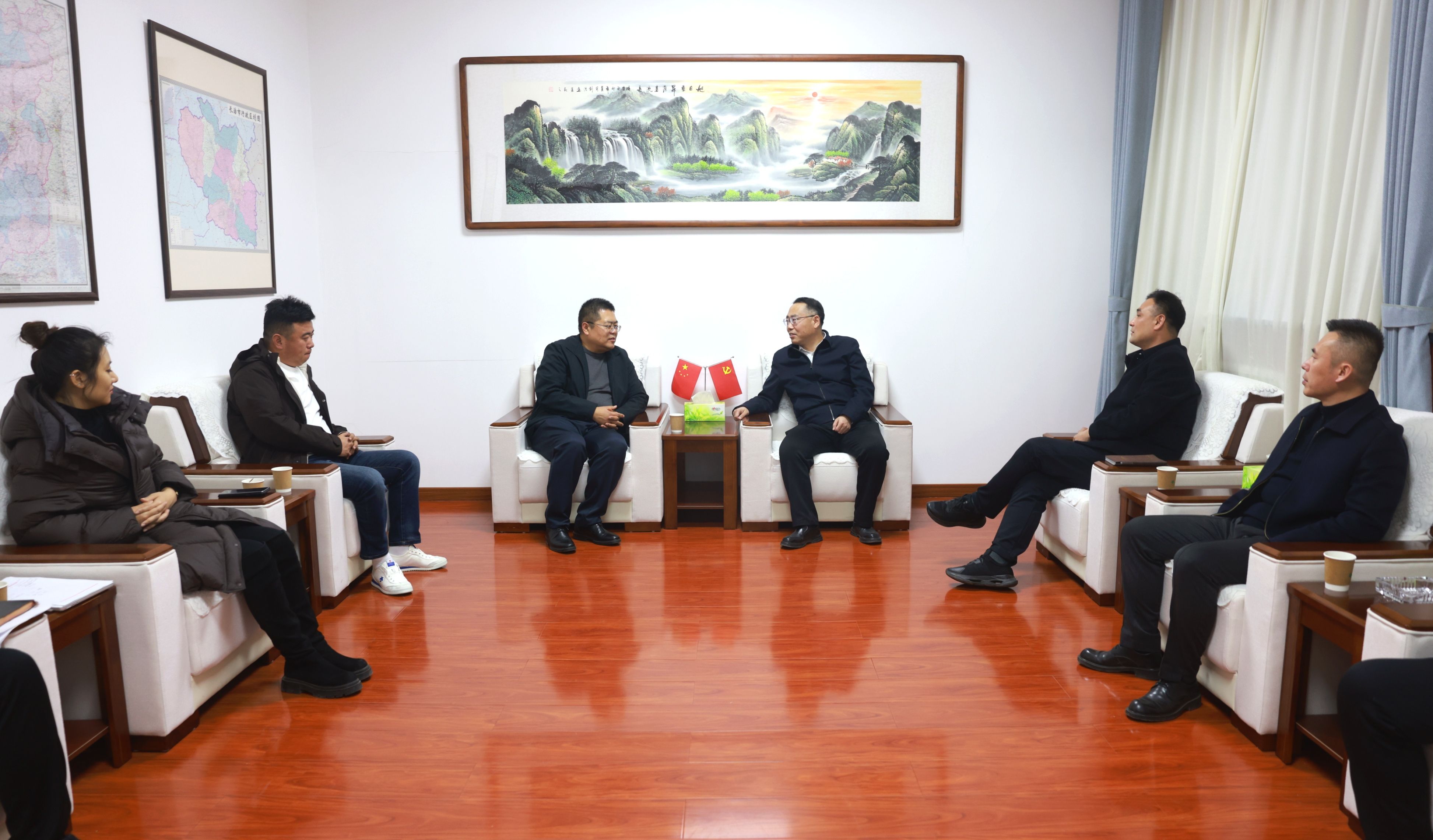 1月14日,县委副书记、县长李俊杰与寿光农控集团总经理李继龙、山西区域经理朱继楷一行举行工作会谈,围绕设施农业产业投资合作事宜深入交流。沁县现代农业产业示范区党工委副书记、管委会主任原伟松参加。